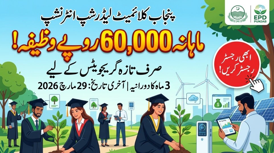The CM Punjab Climate Leadership Internship 2026 is a great chance for fresh graduates in Punjab to earn money, gain real experience, and work for the environment and climate protection. You will earn a monthly stipend of Rs 60,000, get an official government certificate, and build important skills for your future career. Make sure you are eligible, collect all required documents, and complete your online registration before the final deadline on 29 March 2026 at the official portal https://epd.punjab.gov.pk. Apply early to avoid problems and start your journey towards becoming a climate leader.