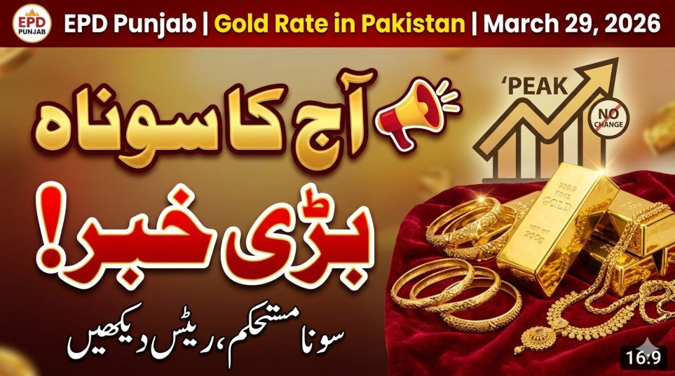 Gold rate in Pakistan on 29 March 2026 remains stable after a significant increase recorded a day earlier. The market is currently holding at high levels due to strong international influence and investor demand. While this makes gold expensive for buyers, it also strengthens its role as a secure investment. Staying informed about market trends and making careful decisions can help individuals benefit from gold investments.